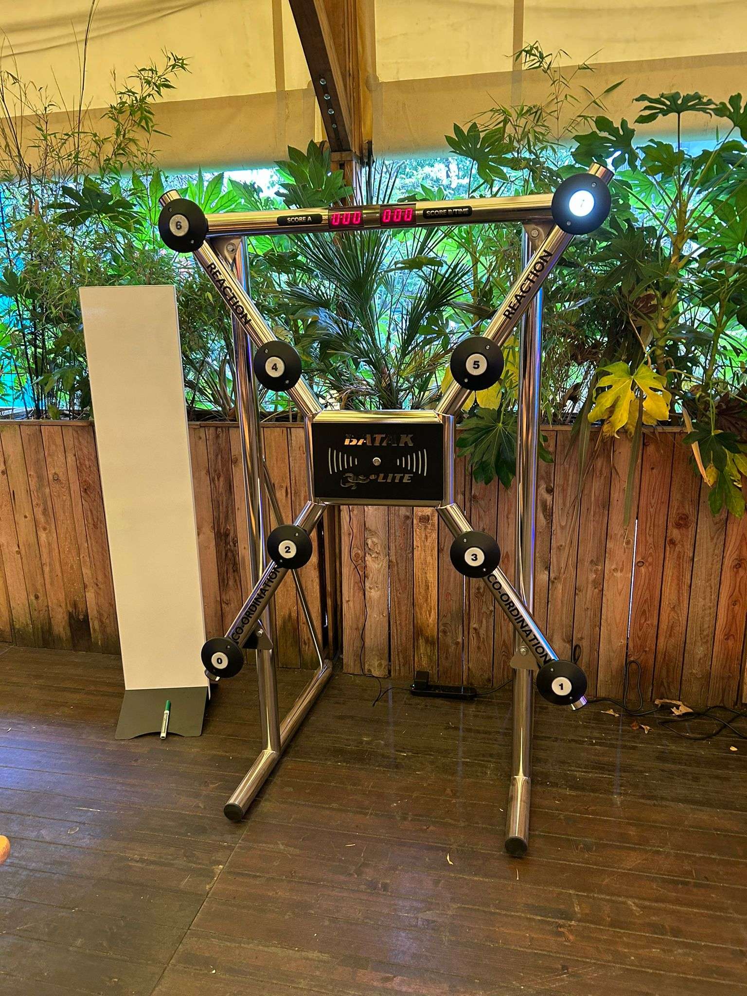 Reaktsioonisein on ruumisäästlik ja äärmiselt kaasahaarav atraktsioon, mis pakub osalejatele tõelist väljakutset. Kaheksa valgustatud nupuga mäng sunnib mängijaid kiiresti liikuma, reageerima ja keskenduma, et määratud aja jooksul kustutada võimalikult palju süttivaid sihtmärke.
