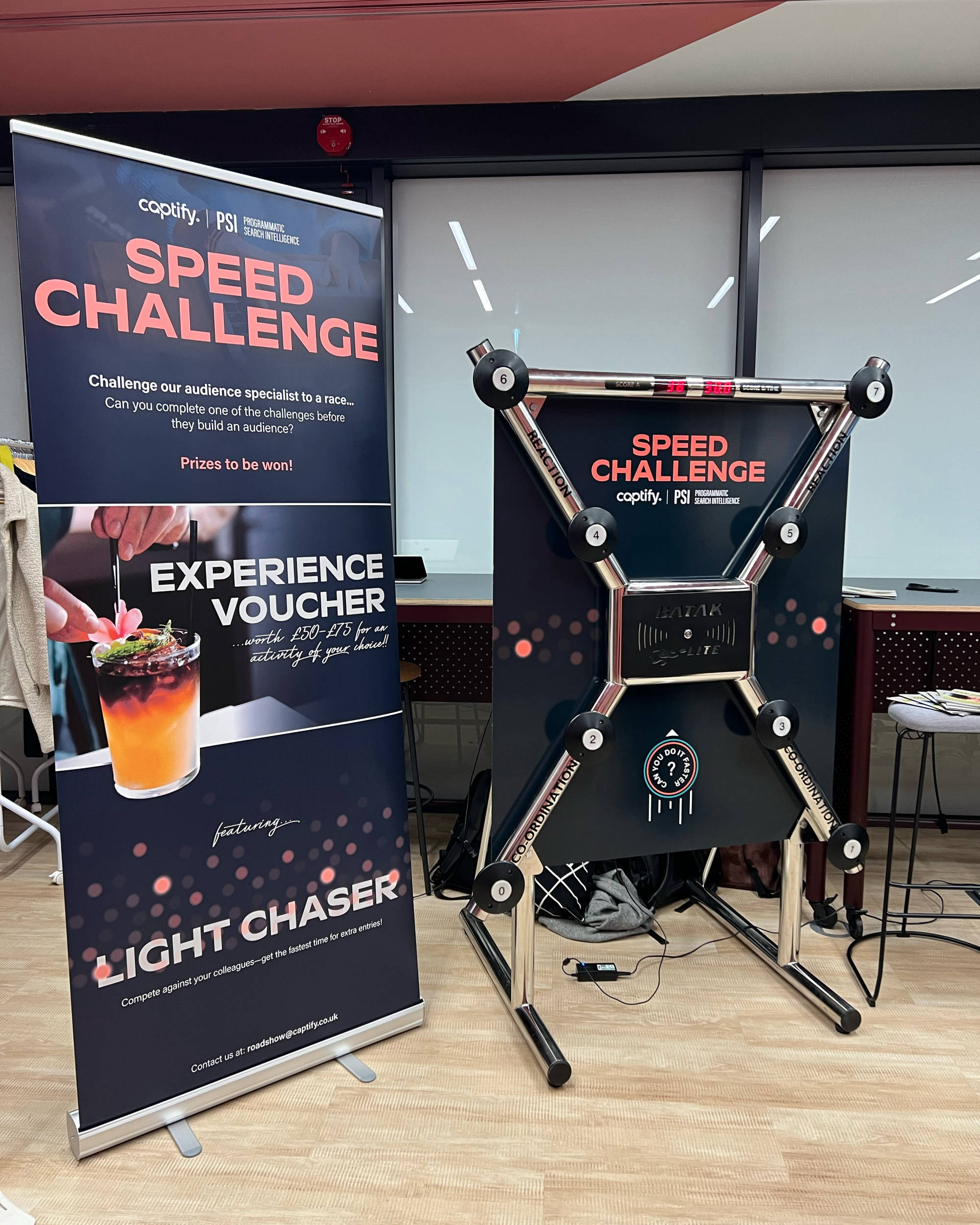 Reaktsioonisein sobib suurepäraselt võistluste läbiviimiseks kogu ürituse vältel. Tulemusi saab pidada edetabelis ning soovi korral kuvada ka eraldi magnetilisel skooritornil, mis lisab mängule publiku tähelepanu ja „Top Gear’i stiilis“ võistluspinget.